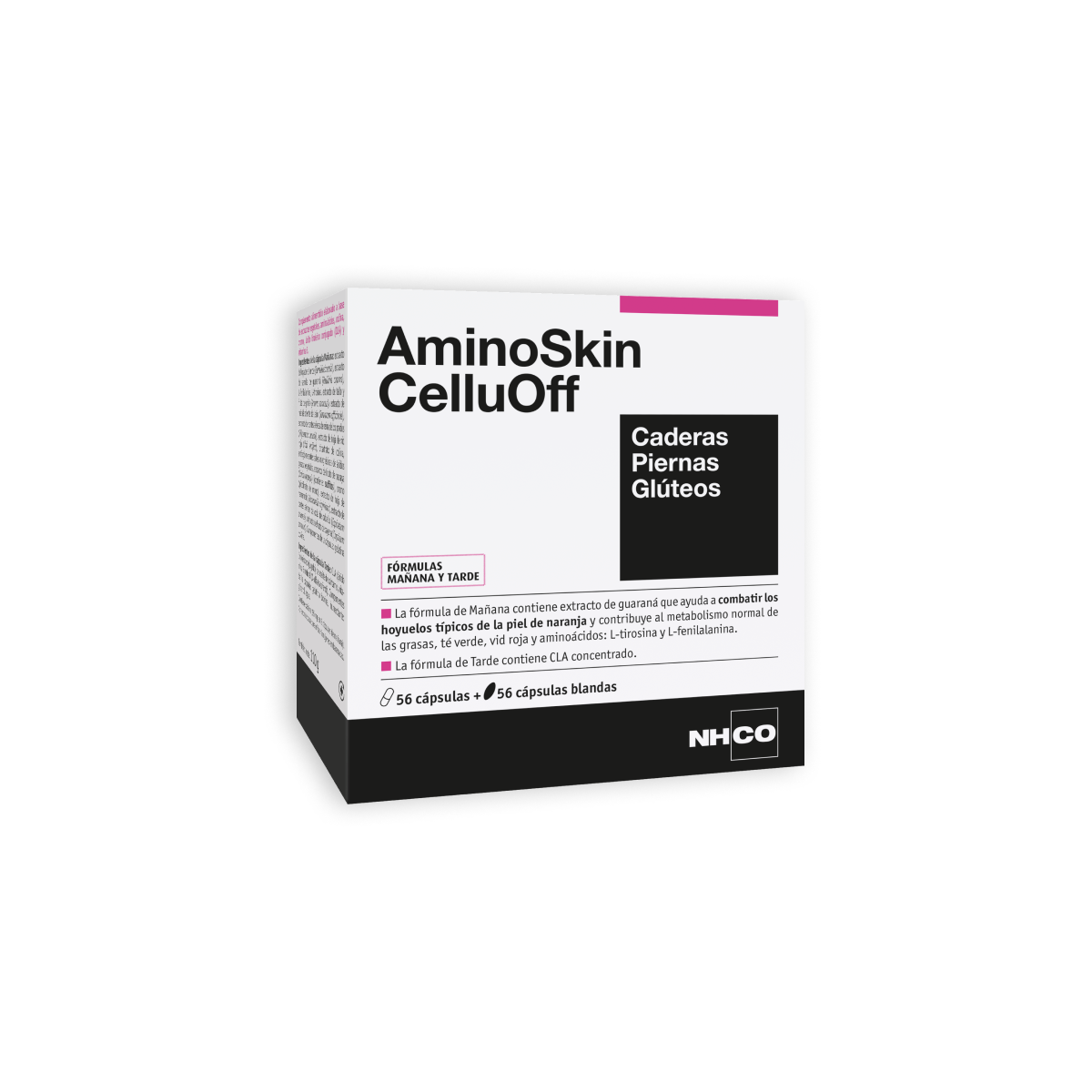 Pack AminoSkin CelluOff (56 cápsulas + 56 cápsulas blandas) — complemento nutricional formulado para apoyar la reducción de la apariencia de la celulitis y la grasa localizada mediante un protocolo mañana/noche con activos drenantes y lipolíticos.