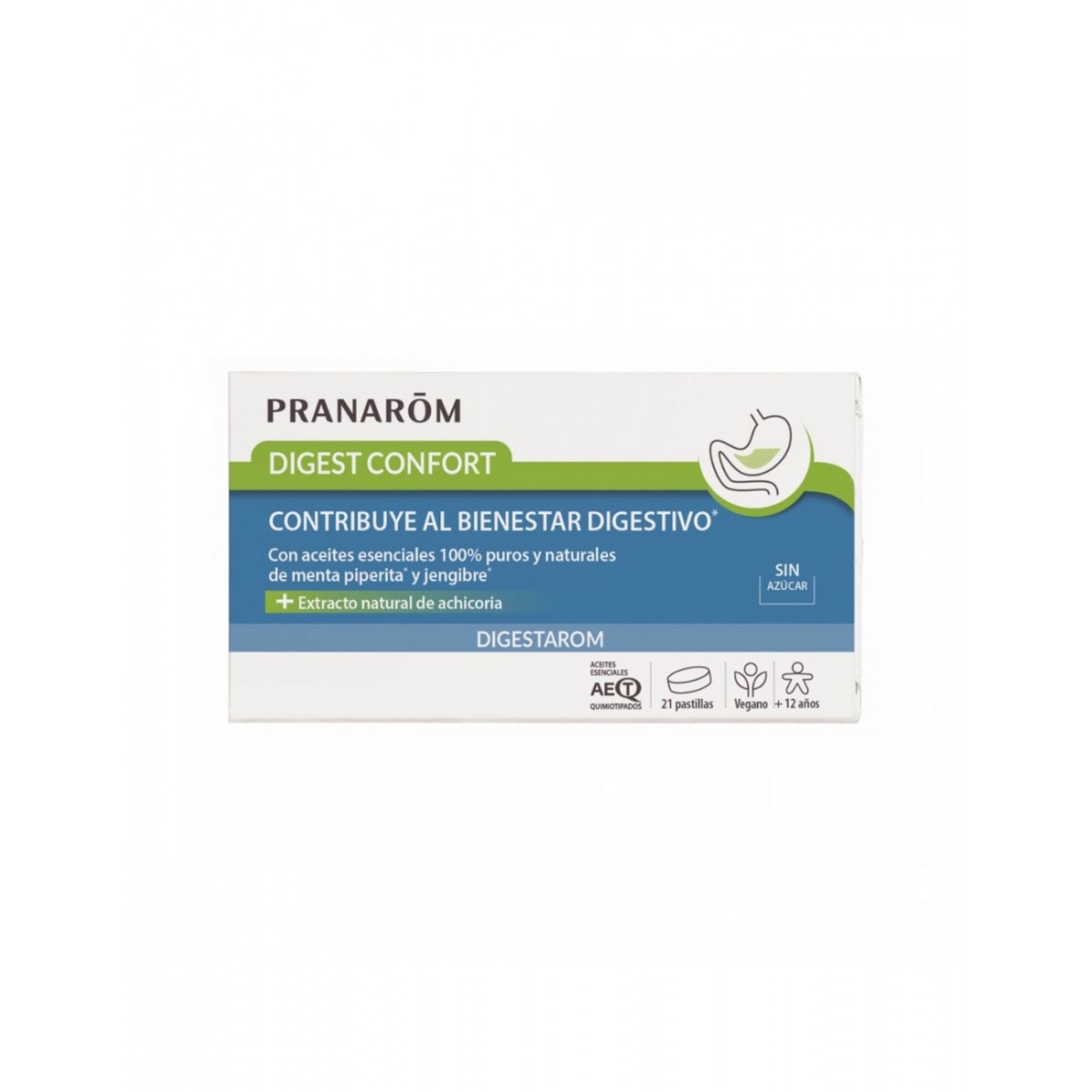 COMPOSICIÓN por 6 comprimidos: Agente de carga: Sorbitol; Extracto de Cichorium intybus 0,30 g (chicoria); Aroma: limón; Antiaglomerantes: dióxido de sílice, sales magnésicas de ácidos grasos; Aceites esenciales: Mentha x piperita 45 mg (Menta), Citrus limonum 45 mg (Limón), Illicium verum 45 mg (Anís estrellado), Zingiber o cinale 29 mg (Jengibre), Citrus reticulata 29 mg (Mandarina), Carum carvi 27 mg (Alcaravea); Edulcorante: sucralosa; Aceite esencial de Cinnamomum cassia 5 mg (canela china).