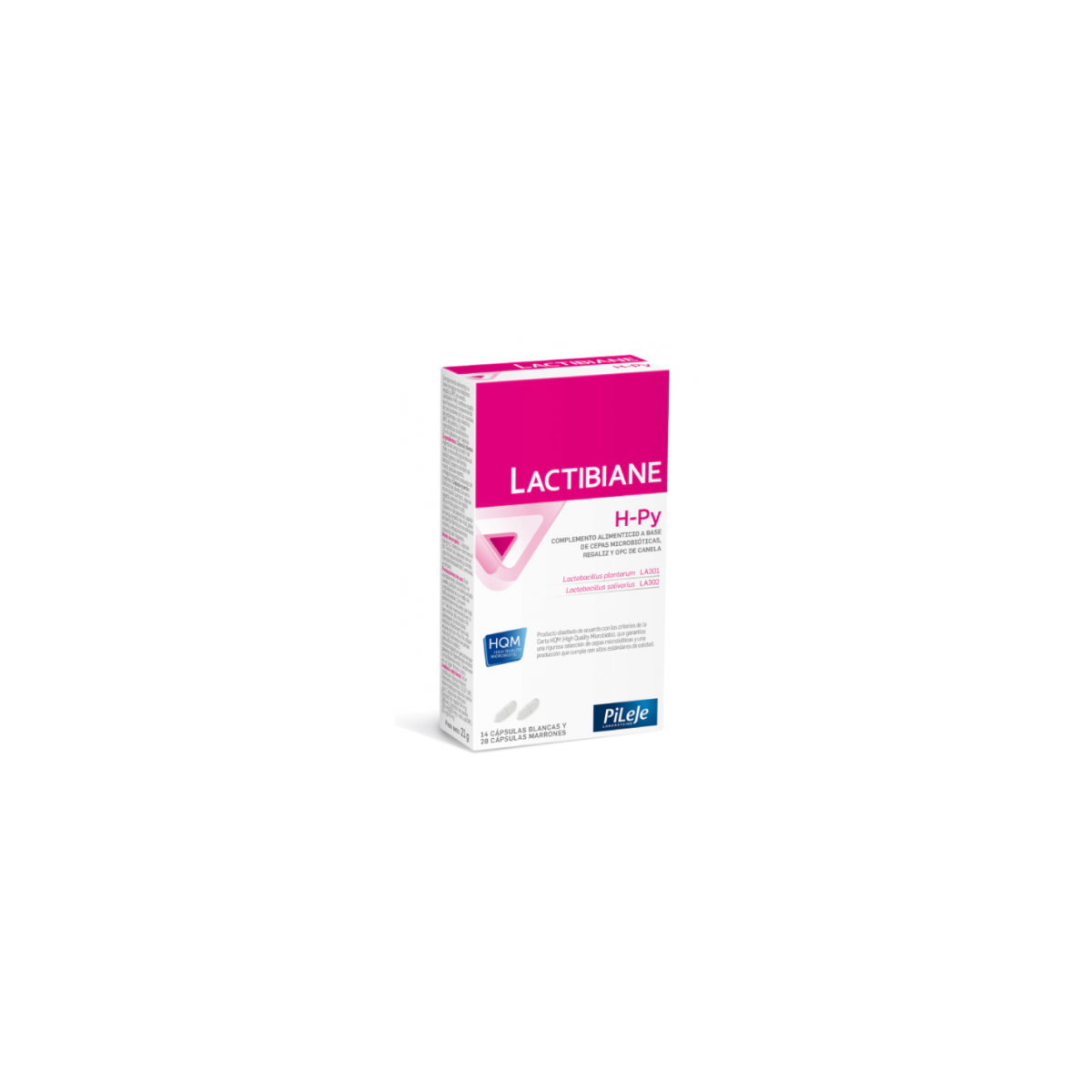 Lactibiane H-Py combina Lactobacillus plantarum LA301 y L. salivarius LA302 con extractos de canela (OPC) y regaliz para reforzar mucosas digestivas. Toma 1 cápsula blanca + 2 marrones al día durante las comidas.